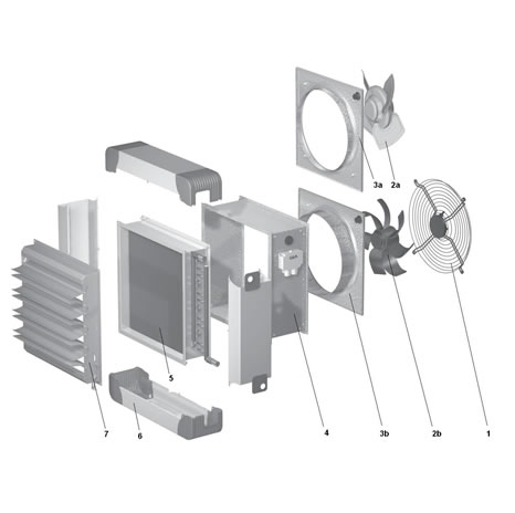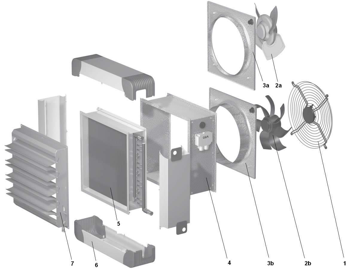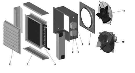 Vysoko účinné výmenníky tepla 1-4 radové. K dispozícii 230V - 1 otáčkové, 400V - 2 otáčkové motory alebo úsporné EC motory. Široká možnosť voľby príslušenstva.